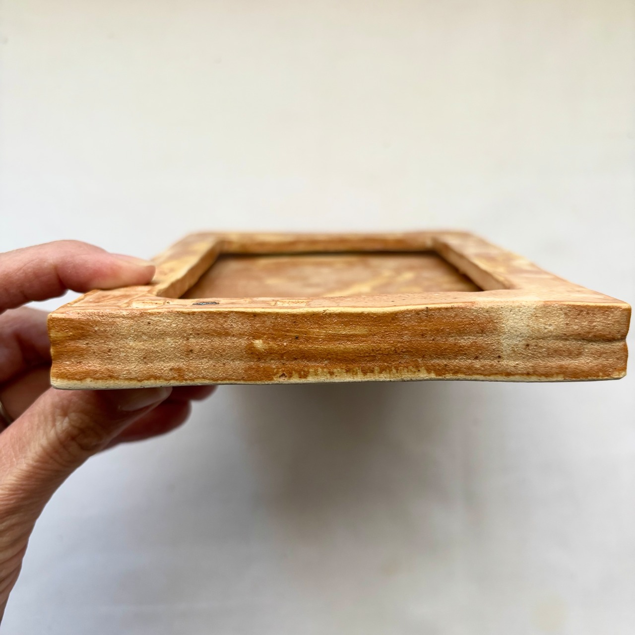 釉薬の特徴で白っぽいところとベージュの濃いところが入り混じっているのが魅力的な作品!