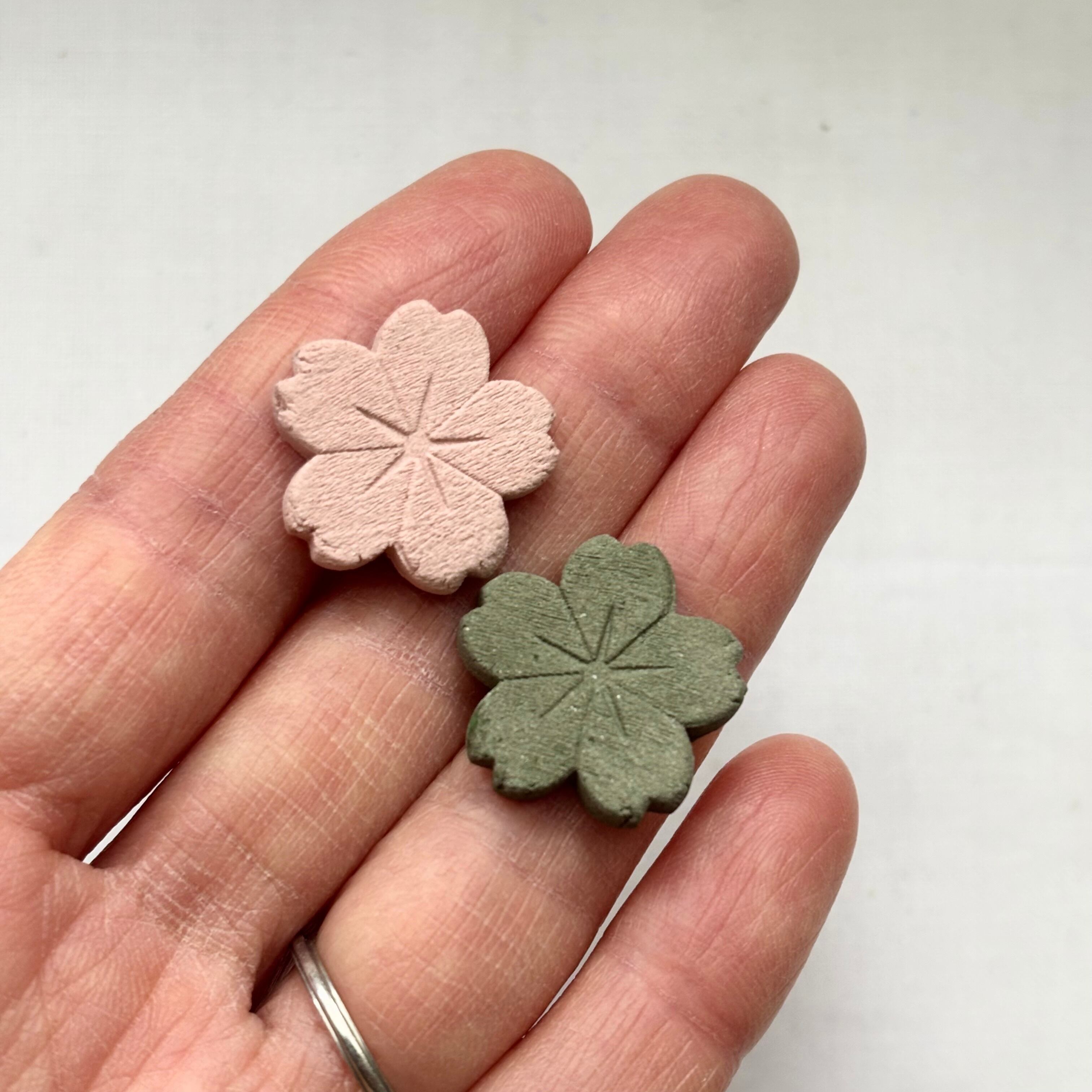 色鮮やかなお花の形の置物・アロマストーンセット 〜ピンク&緑の桜セット〜